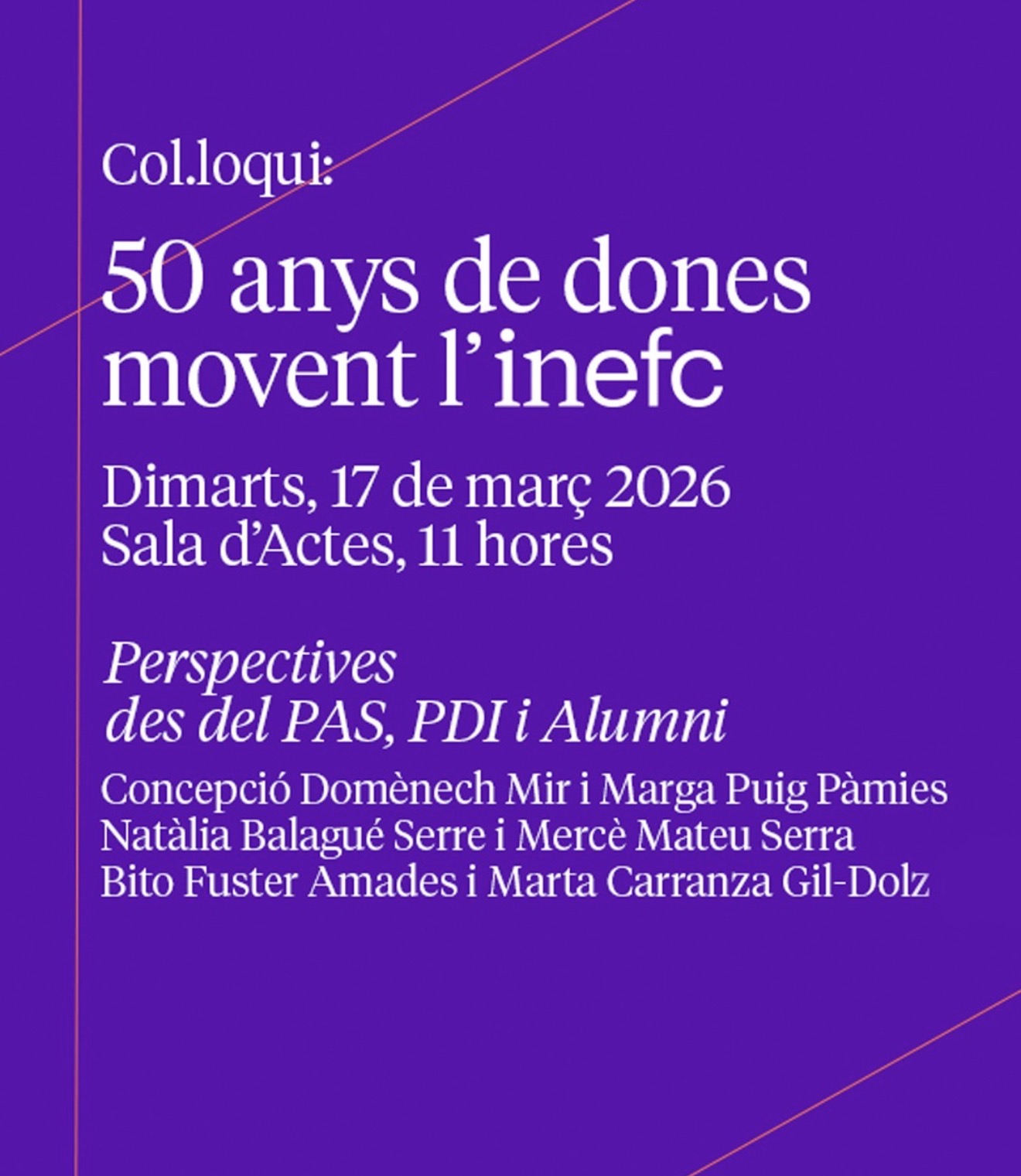 En el marc del 50è aniversari de l’INEFC Barcelona i de la commemoració del 8M, Dia Internacional de les Dones, el centre organitza l’acte “50 anys de dones movent l’INEFC. Perspectives des del PAS, PDI i alumnat”